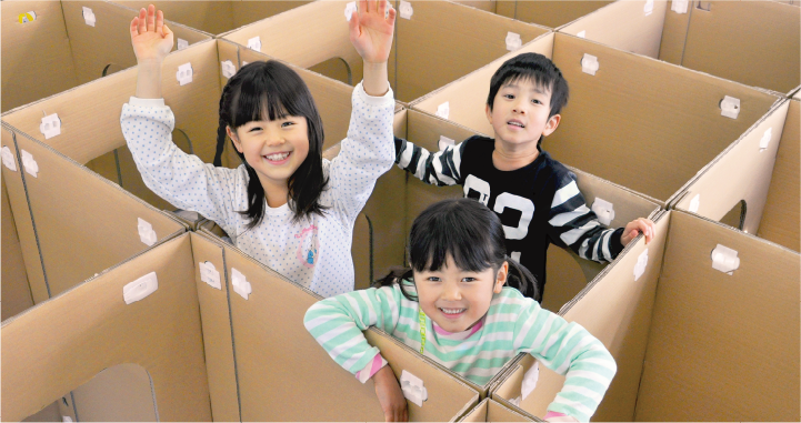 環境に優しい身近な生活にあるダンボールを使ったイベントを開催することにより、子供たちの創造性を育むだけではなく、親子のふれあいを生む場も提供します。